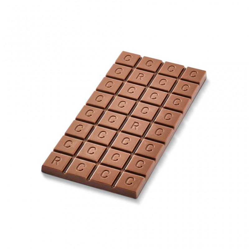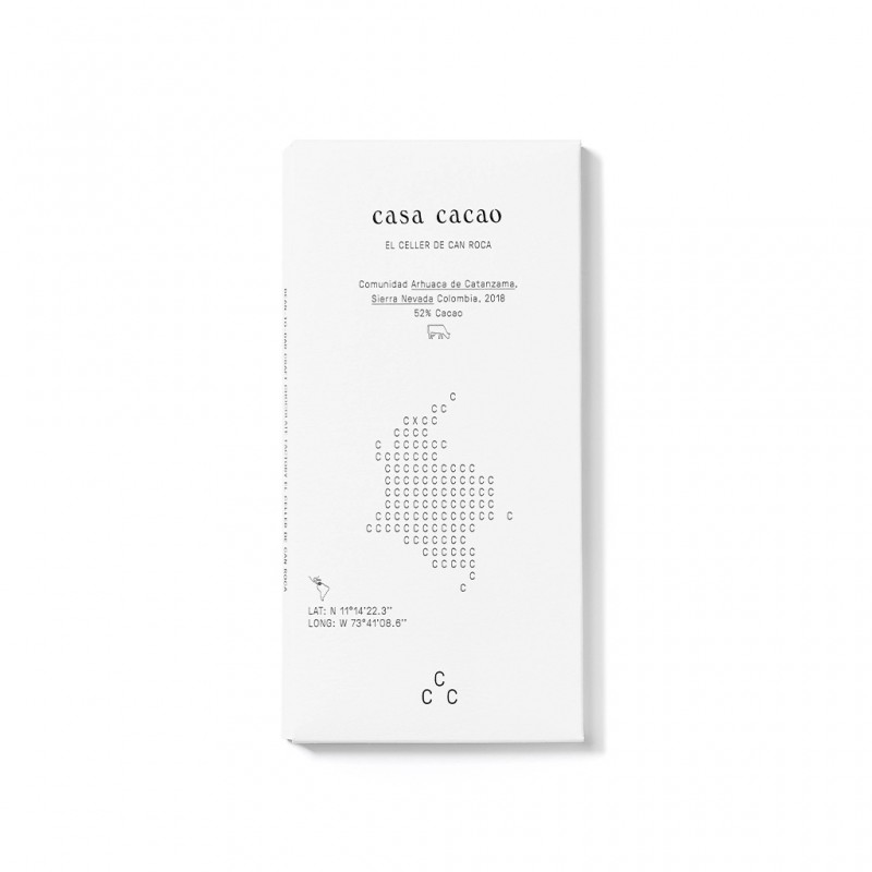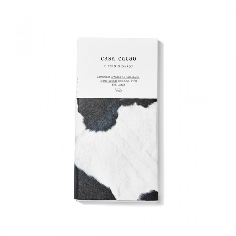 Ingredientes: Habas de cacao origen Comunidad Arhuaca (Colombia), azúcar, leche de vaca en polvo entera (15%), manteca de cacao.