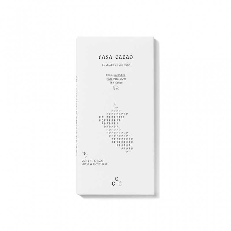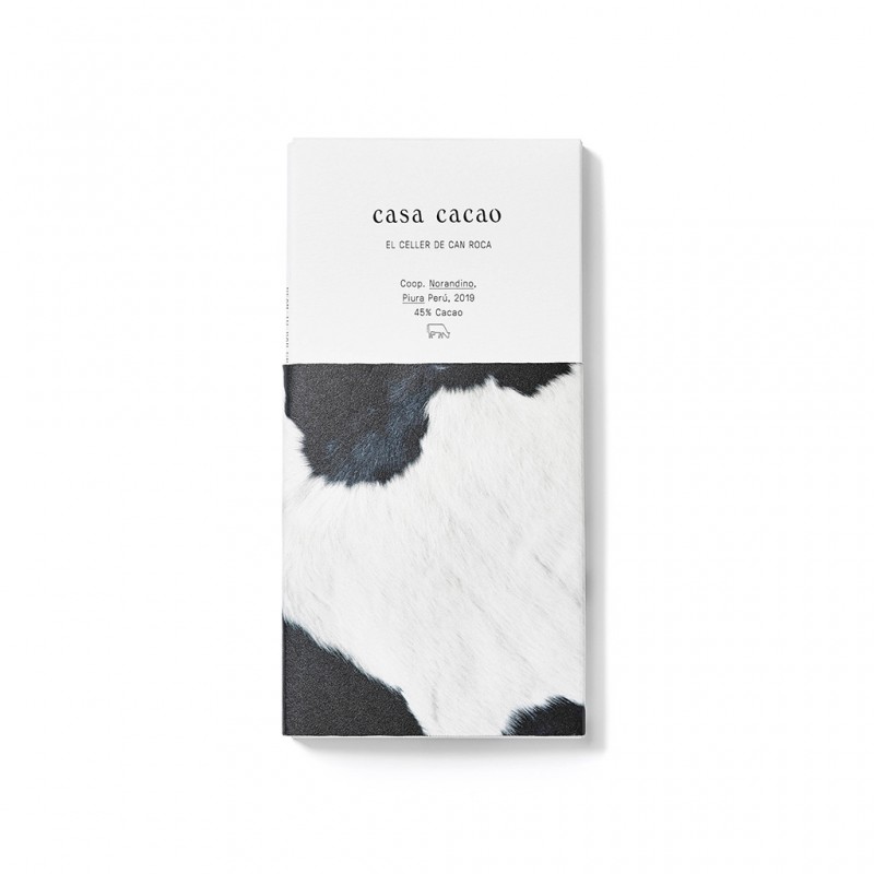 Ingredientes: Habas de cacao origen Piura (Perú), leche en polvo entera (14%), azúcar, manteca de cacao.